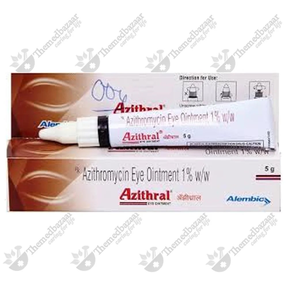 How Azithral Eye Ointment Works: Azithral Eye Ointment contains Azithromycin (1% w/w), a powerful antibiotic that works by preventing bacteria from synthesizing essential proteins needed for their survival and reproduction. Without these proteins, the bacteria cannot carry out vital functions, thereby stopping their growth and clearing the infection.