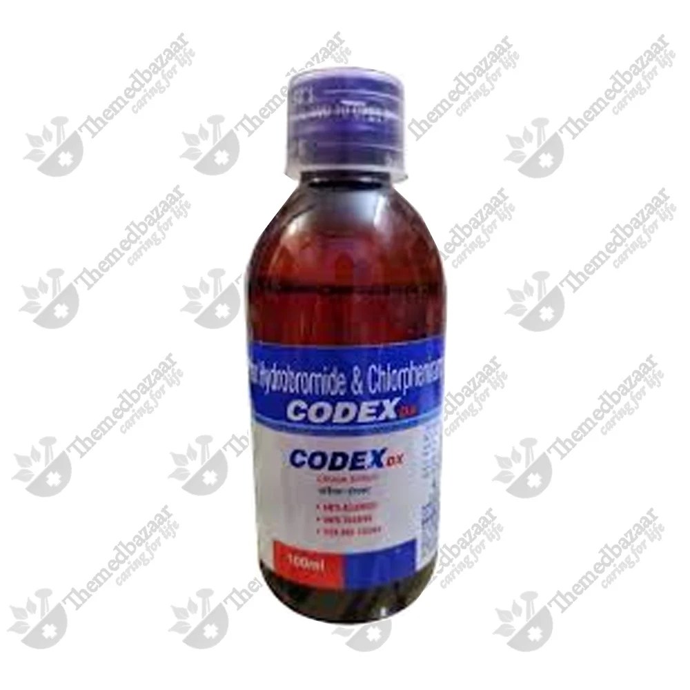 Codex D Syrup is a combination medication used to provide relief from the symptoms of common cold and dry cough. It effectively reduces symptoms such as a runny nose, stuffy nose, sneezing, watery eyes, and nasal congestion, helping to alleviate discomfort associated with these conditions. Codex D Syrup works quickly to suppress a dry cough and relieve other allergy-related symptoms, enabling you to resume normal daily activities with greater ease.