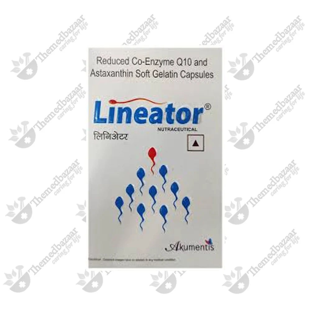 Lineator Capsule is a dietary supplement specifically formulated to support male fertility. It contains Coenzyme Q10 (Co-Q10) and Astaxanthin, both of which are powerful antioxidants known to improve sperm quality, motility, and morphology. Co-Q10, also known as Ubiquinone, plays a vital role in energy production within cells and helps reduce oxidative stress, which can negatively impact sperm health. Astaxanthin, a potent antioxidant, enhances the effects of Co-Q10 and provides additional protection against oxidative damage, further supporting fertility. Lineator is commonly used to improve the quality and fertilizing potential of semen, making it beneficial for men experiencing infertility or subfertility.